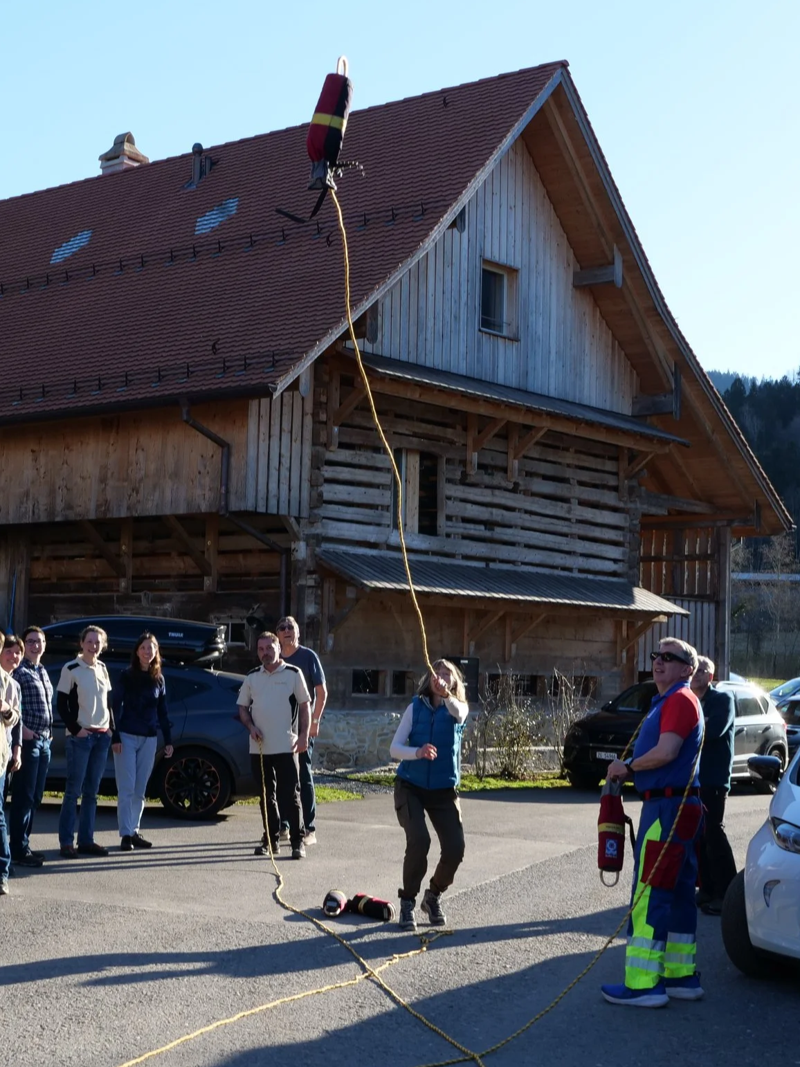 Retten heisst nicht automatisch ins Wasser springen. Zuerst versuchen wir immer, vom Ufer aus zu helfen: mit einer Stange, einer Leine, einem Wurfsack oder sogar mit einer PET-Flasche, die Auftrieb gibt. Alles, woran sich eine Person festhalten kann, verschafft wertvolle Zeit. Wenn immer möglich, rettet man nicht allein.