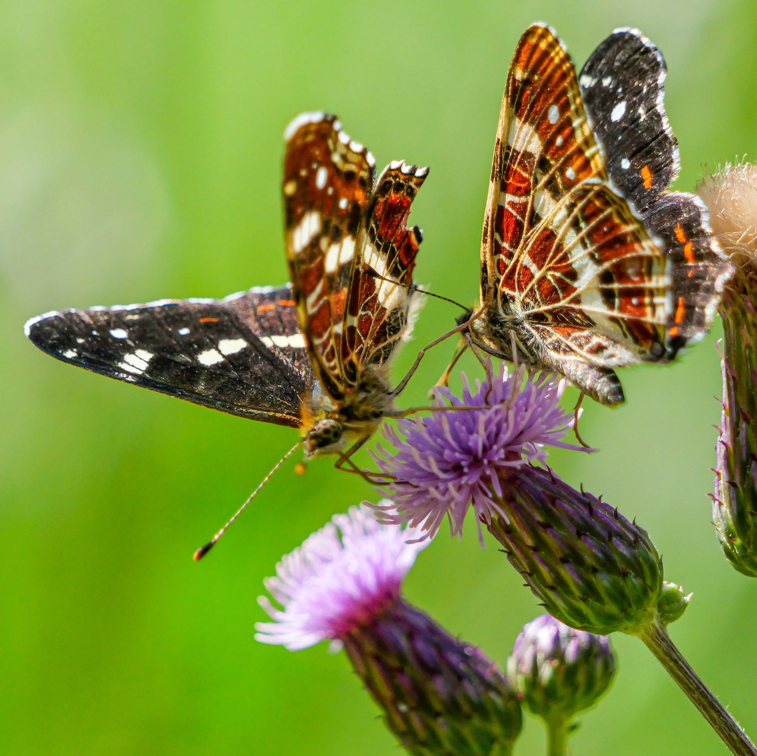 Im Sommer wird der Steinbruch lebendig. Schachbrettfalter gleiten ruhig durch die offenen Flächen, Kaisermäntel ziehen kraftvoll ihre Bahnen. Das Landkärtchen überrascht mit seinem je nach Generation völlig unterschiedlichen Erscheinungsbild, während verschiedene Bläulinge die Blüten besuchen.
